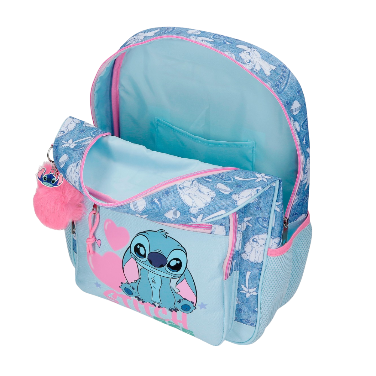 La mochila Best Wishes de 38 cm combina funcionalidad y estilo en un diseño encantador que sigue la línea del estampado de lunares y corazones multicolor en tonos pastel. Ideal para niñas y adolescentes, es perfecta tanto para el colegio como para actividades extraescolares o salidas diarias.