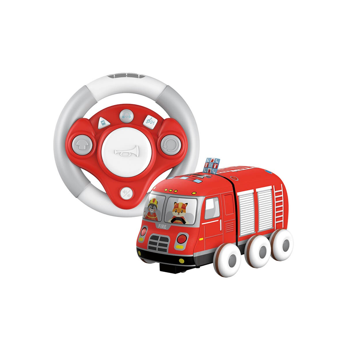 Coche con radiocontrol infantil diseñado para que los más pequeños se inicien de forma segura y divertida. Incorpora una funda protectora blanda desmontable y lavable que protege muebles y paredes durante el juego. Se controla mediante un volante con botones interactivos que activan sonidos, canciones infantiles y melodías educativas. Un juguete completo que estimula la coordinación, la motricidad y el aprendizaje a través del juego.