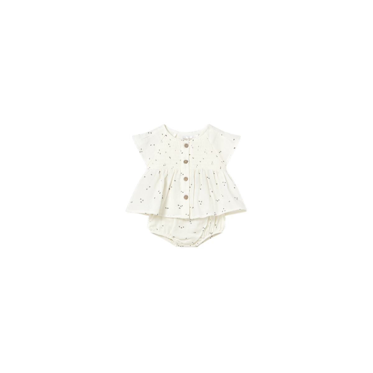 El conjunto Mayoral de cubrepañal y blusa para recién nacida ha sido diseñado pensando en la comodidad y el cuidado de la piel del bebé desde sus primeros días. La blusa, confeccionada con tejido suave y ligero, aporta transpirabilidad y un ajuste cómodo, mientras que el cubrepañal ofrece una sujeción perfecta del pañal sin oprimir, permitiendo total libertad de movimiento.