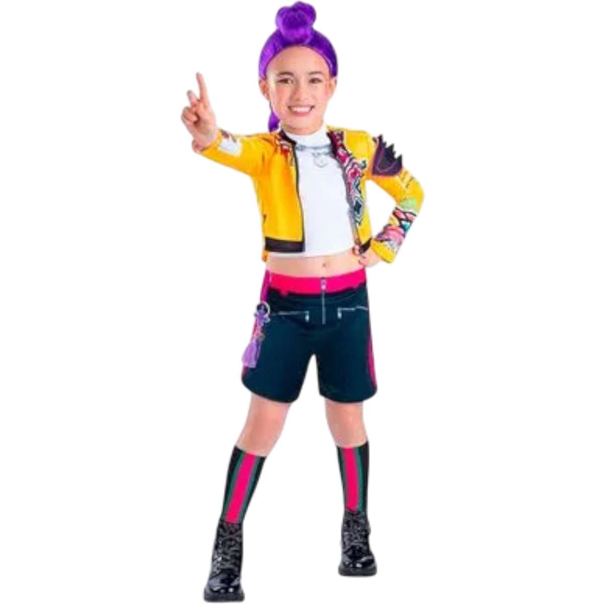 El disfraz Rumi Classic es una opción perfecta para quienes buscan un look original y lleno de color. Este modelo destaca por su parte superior en tono amarillo, que aporta un estilo alegre y reconocible, inspirado en el personaje Rumi.