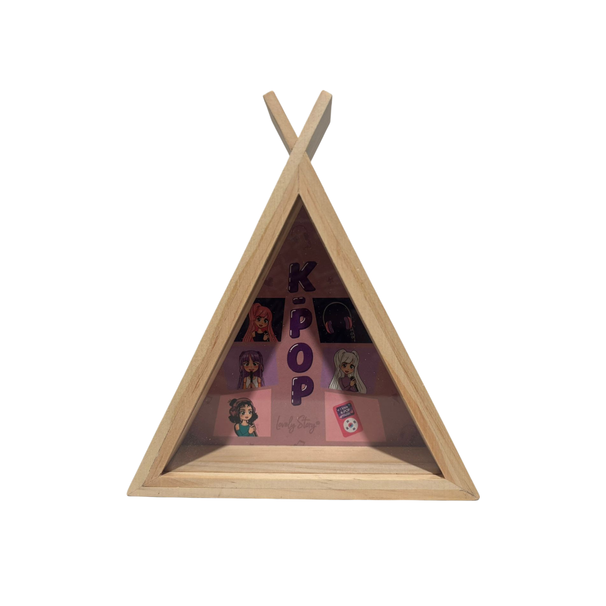 La hucha K-pop de madera con forma tipi es un accesorio práctico y decorativo ideal para fans del estilo K-pop y la decoración juvenil. Su diseño en forma de tipi la convierte en una pieza única, perfecta para habitaciones infantiles o juveniles.