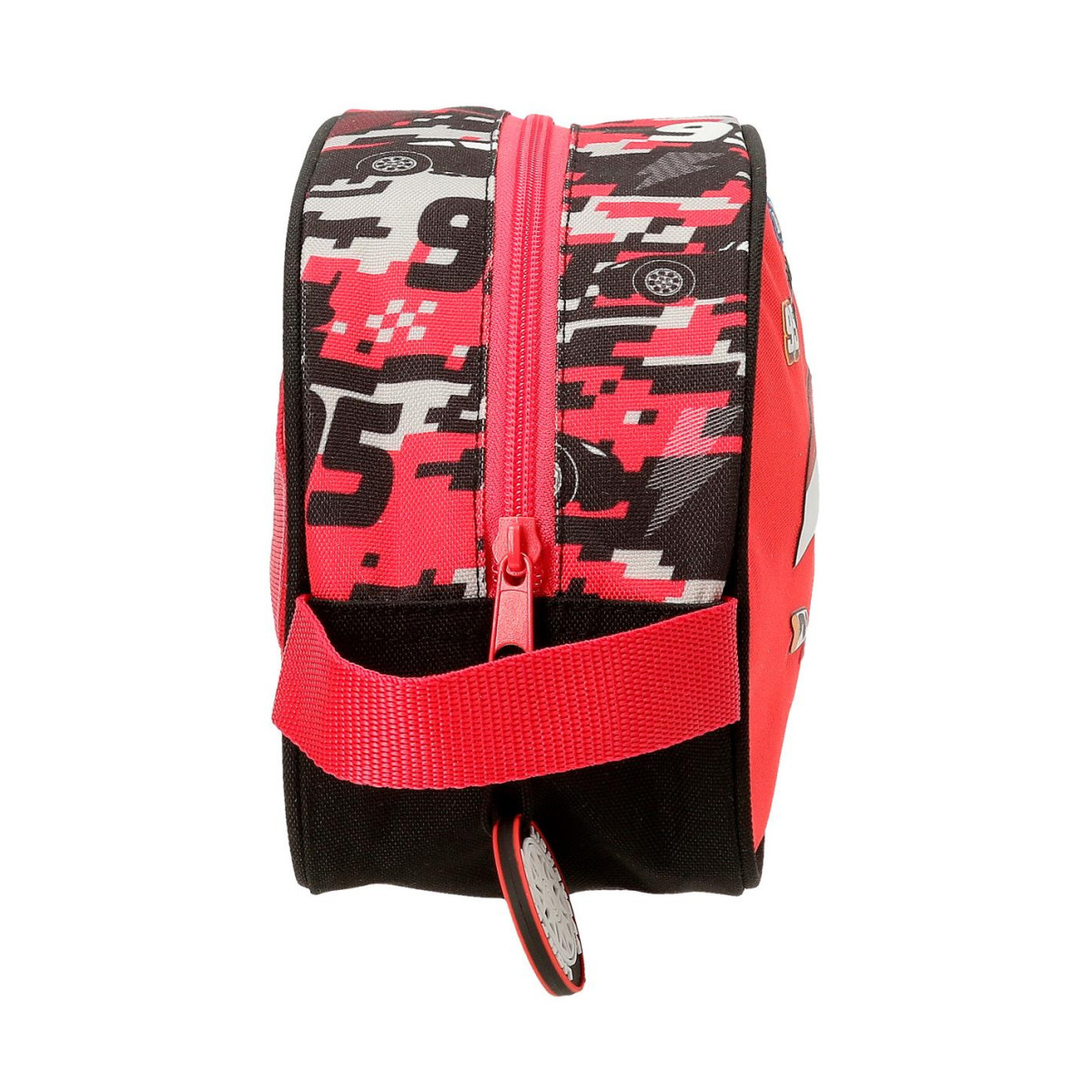 Fabricado con materiales resistentes y fáciles de limpiar, está diseñado para soportar el uso diario en el colegio, viajes o excursiones. Su cierre de cremallera asegura el contenido, manteniéndolo protegido y bien organizado.