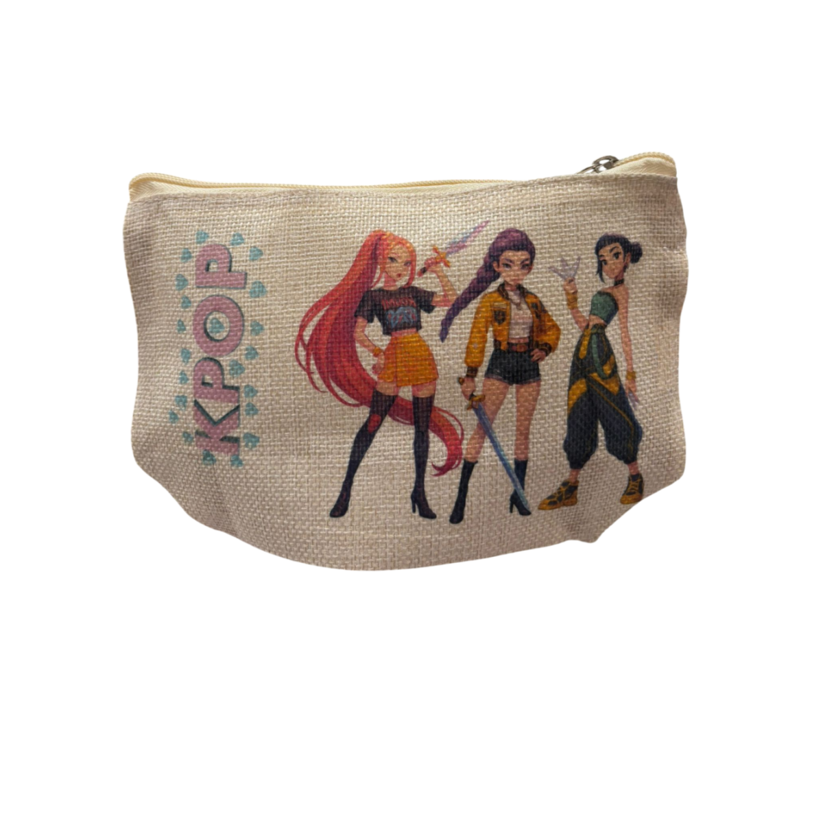 Neceser KPOP Hunters de yute con diseño moderno y juvenil, ideal para fans del K-POP. Práctico, ligero y resistente, perfecto para llevar maquillaje, accesorios o material escolar con estilo.