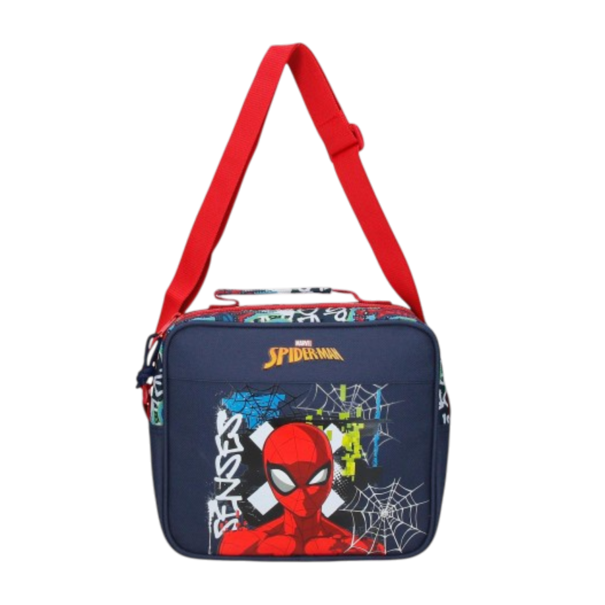 Portameriendas térmico Spider-Man con diseño graffiti, práctico y resistente. Ideal para conservar la temperatura de los alimentos en el colegio, excursiones o actividades diarias.