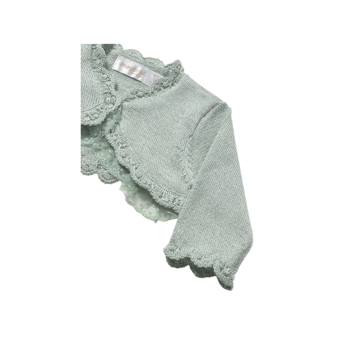 La rebeca de tricot para ceremonia en color aqua para recién nacida de la marca Mayoral es una prenda elegante, delicada y funcional, perfecta para completar looks de eventos especiales. Aporta abrigo ligero, comodidad y un toque sofisticado ideal para bautizos, celebraciones y ocasiones especiales.
