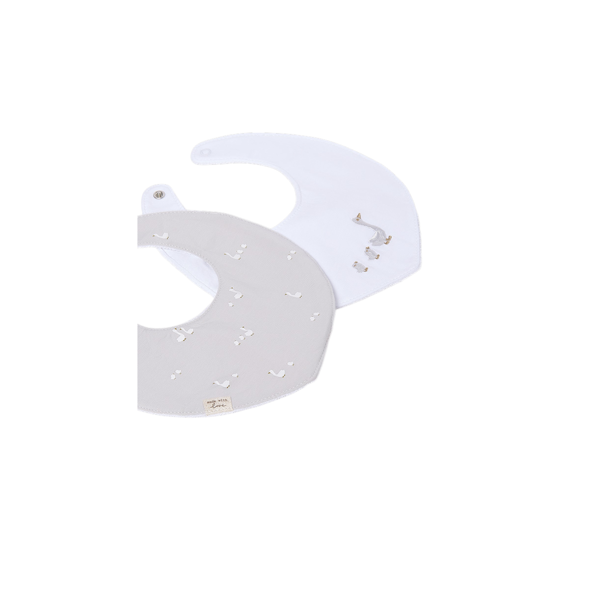 Set de 2 baberos para bebé de la marca Mayoral, suaves, prácticos y con diseños adorables. Ideales para proteger la ropa durante las comidas.