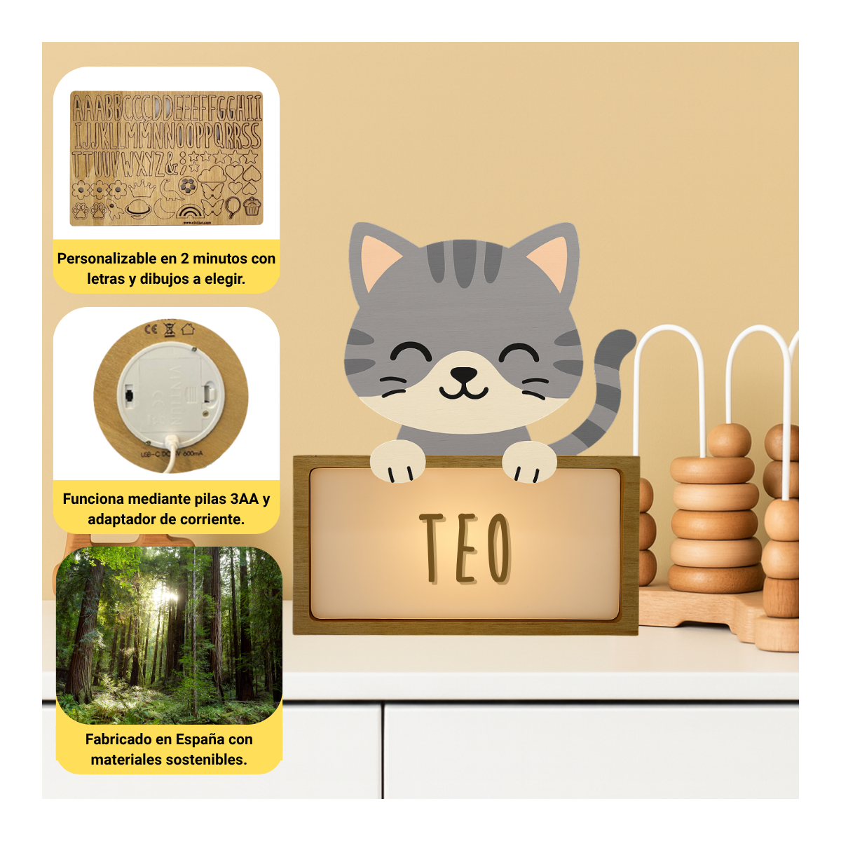 Lámpara Led Infantil Personalizada - Modelo Gato